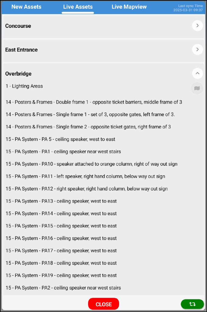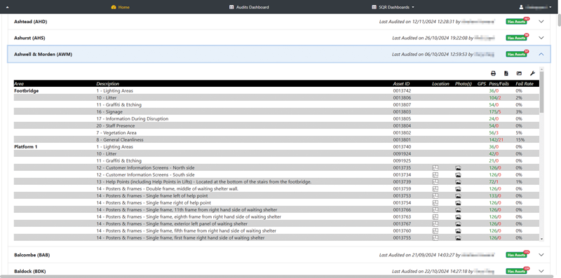 Create, update, and manage station assets (e.g. signage, seating) from web and mobile. The system is an Asset database for those assets audited by SQR regime.